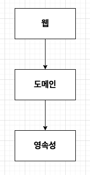 맨 위에 웹 계층에서는 요청을 받고 가운데 도메인 혹은 비즈니스 계층으로 요청을 보낸다